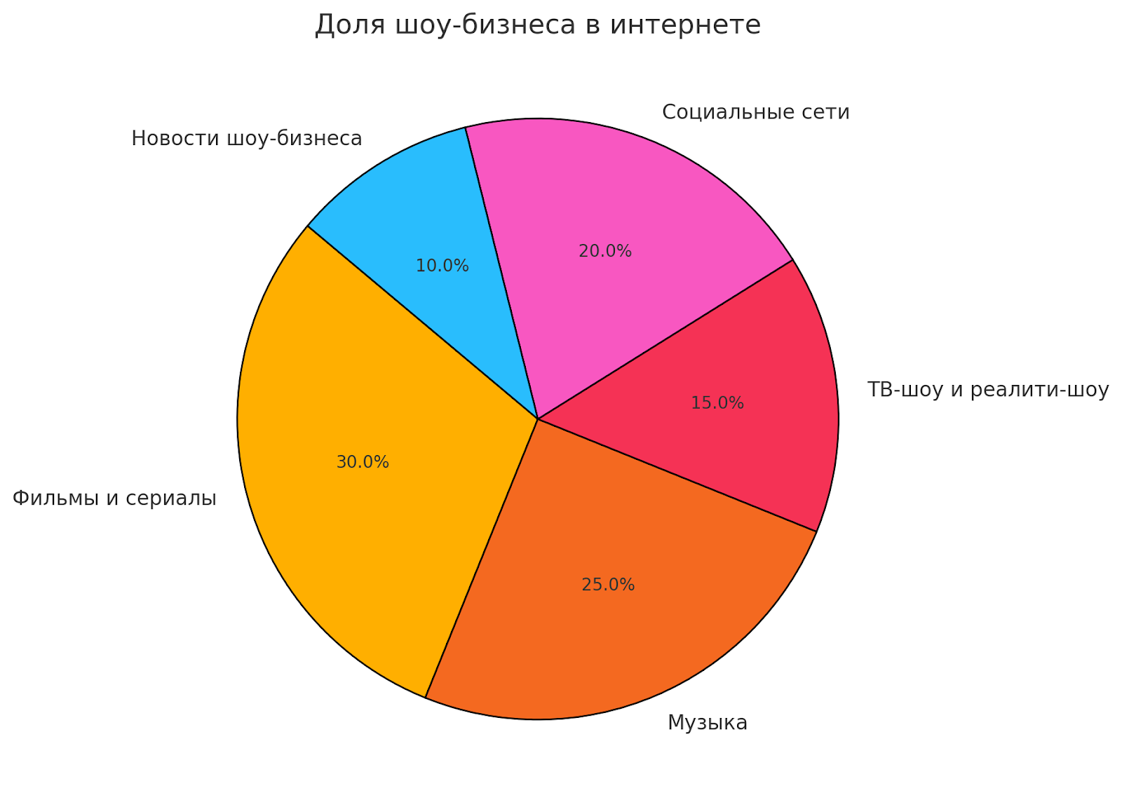 Вот диаграмма о доле шоу-бизнеса в Интернете, которая отражает возможности значительного привлечения трафика на сайт.