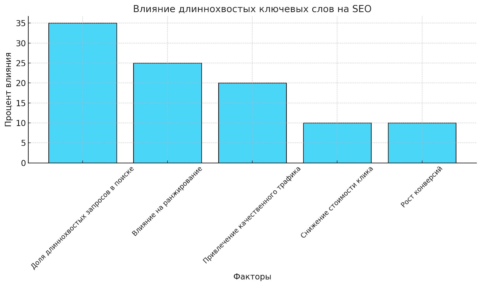 Низкая конкуренция. Большинство компаний концентрируются на высокочастотных запросах, оставляя длиннохвостые практически свободными.